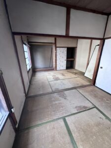 今回の現場では、生活家財と雑貨類の搬出が完了し、各部屋とも床面が見える状態になりました。和室は特に、物がなくなると畳や壁の状態が分かりやすくなるため、部屋ごとに以下を確認しています。